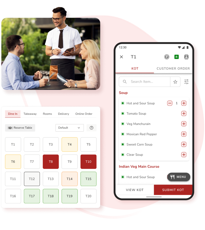 - Separate Menu for Restaurant, Rooms & Takeaway