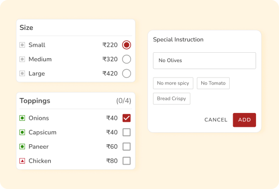Accommodate customer preferences with easy order customization options, ensuring a personalized dining experience.