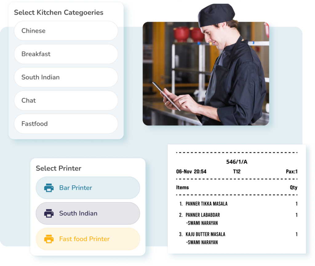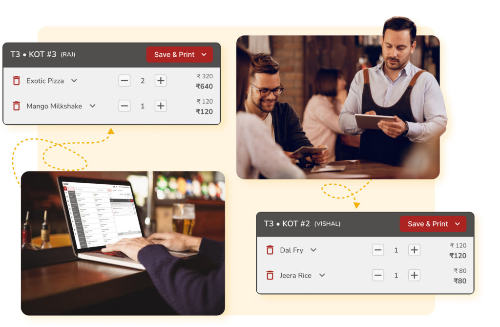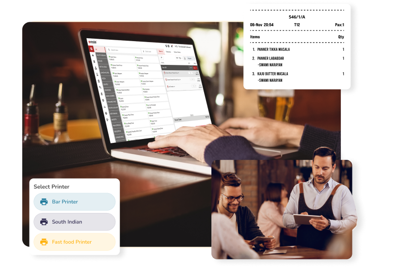 - Generate KOT from one terminal and print the bill from another, no sweat!