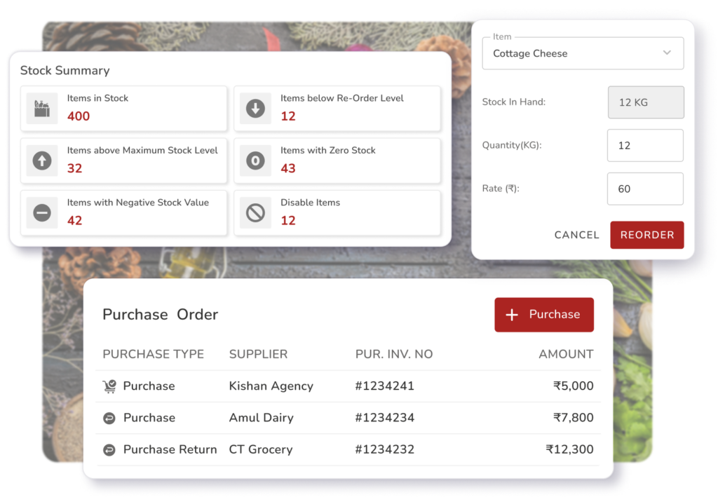 Our inventory management system allows you to keep a real-time check on food costs & consumption rate