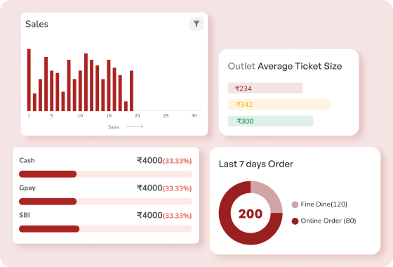 Take table or area-wise orders, print KOT, and accept payment. Manage all online orders, deliveries, and more from one single screen.